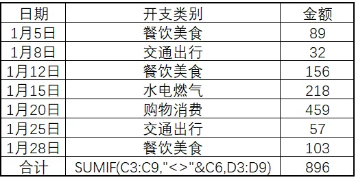 a.单条件求和:公式【=SUMIF(条件区域, 条件, 求和区域)】,求和不计算“水电煤气”项;