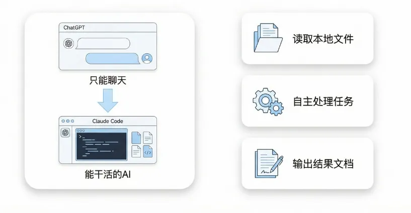如果ChatGPT是一个很会说话的顾问,Claude Code就是一个能帮你真正干活的全能助手——读文件、改文件、写代码、做分析、批量处理,甚至帮你剪视频。
