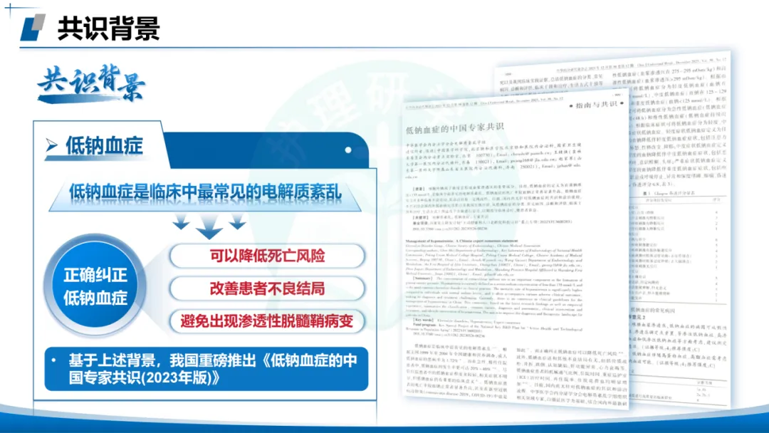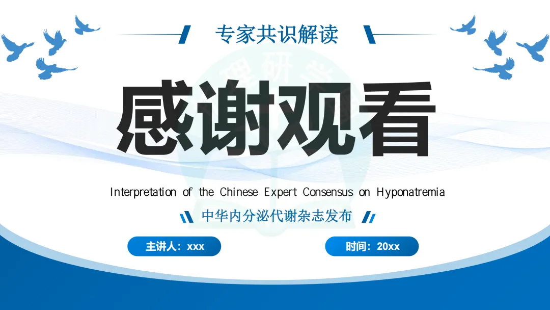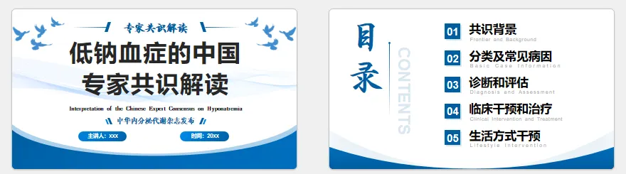 我们主色以蓝色调为主来设计PPT的低钠血症的中国专家共识解读📖。