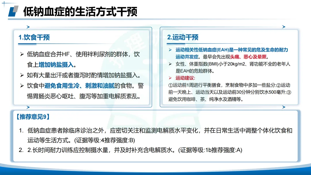 运动干预:运动相关性低钠血症(EAH)常见于耐力运动,女性👧、低BMI、老年肾功能不全者为高危人群。