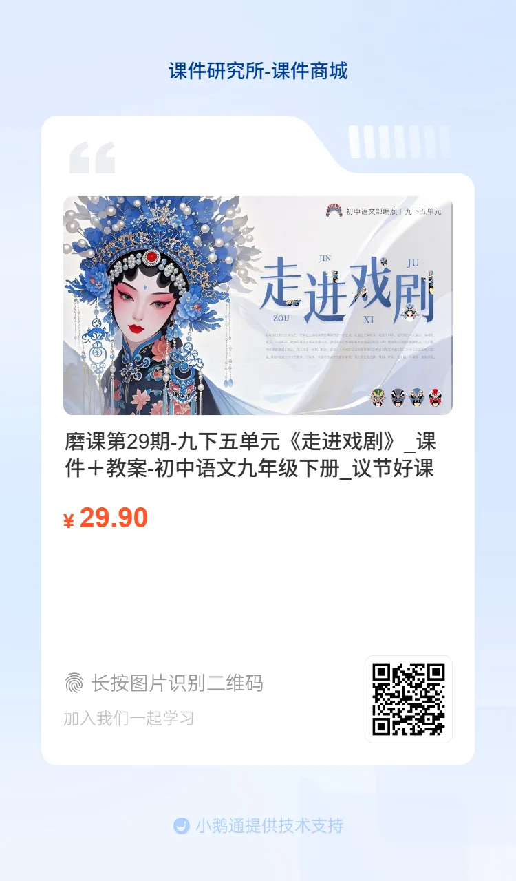 🎉🎉初中语文议节好课教研群来给大家分享精彩的磨课活动啦~这次要介绍的是《走进戏剧》大单元课件!