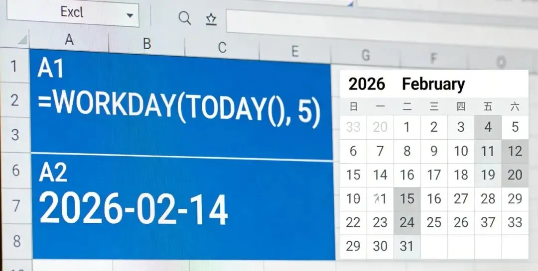 举个例子:今天安排任务,要求5个工作日内完成,输入公式=WORKDAY(TODAY(), 5),系统会自动跳过周末,直接算出截止日期(2026-02-14);