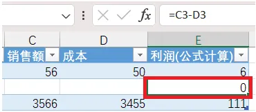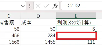 这是因为在普通的单元格区域,数据中间插入一行后,原有的公式范围不会自动扩展到新行。例如上图中,原本在E列使用 =C2-D2 计算每行利润,当在第2行和第3行之间插入新行后,新插入的第3行E列单元格是空的,需要手动将公式从第2行复制下来。这极易导致数据计算错误,需要我们时刻保持警惕并手动干预,用起来非常不方便