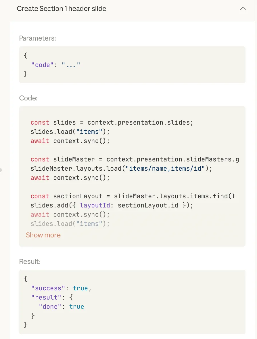 我根据自己的要求,让它基本将 50 页 PPT 都重新生成了一遍。期间还发现一个有趣的事情,模型会自动检测页面的布局问题,如果留白过多或者元素重叠,会自动调整。但是这个过程的 token 也真是在疯狂燃烧。