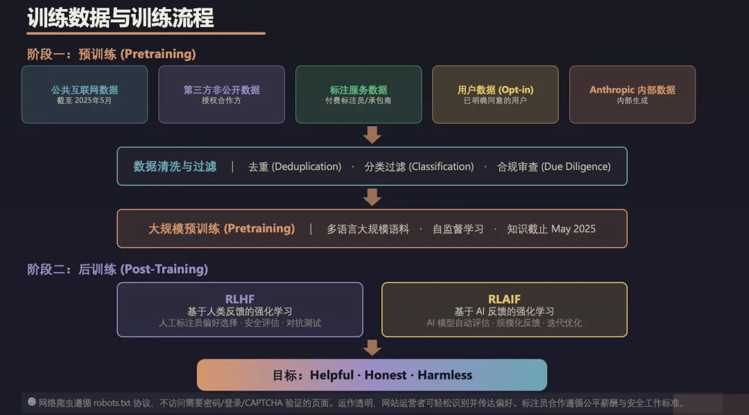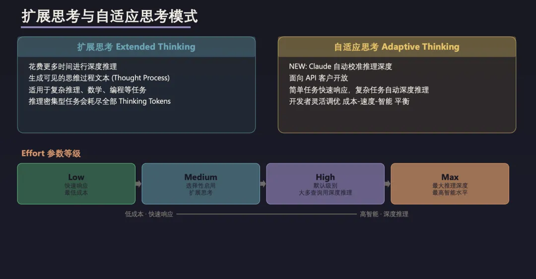 效果非常棒,比如下面关于预训练、自适应思考以及发布决策这几页内容: