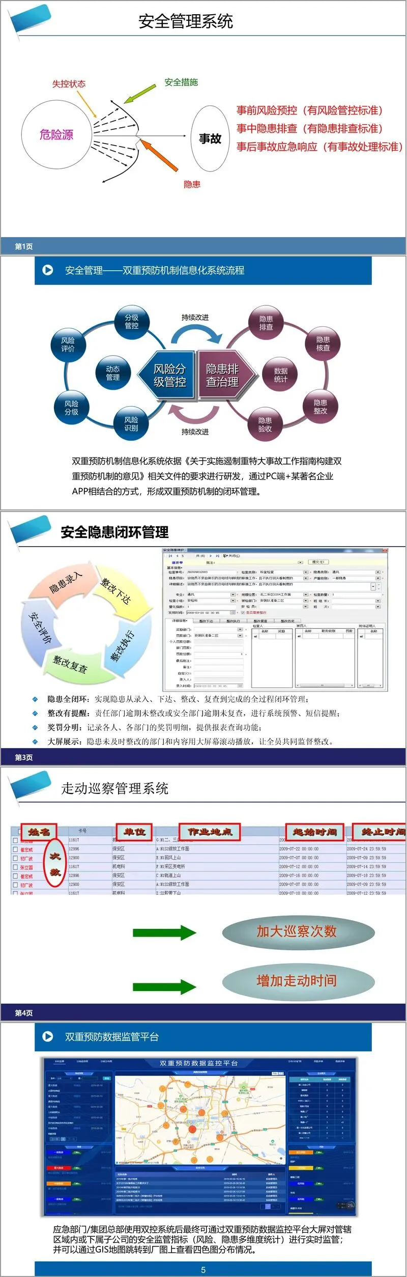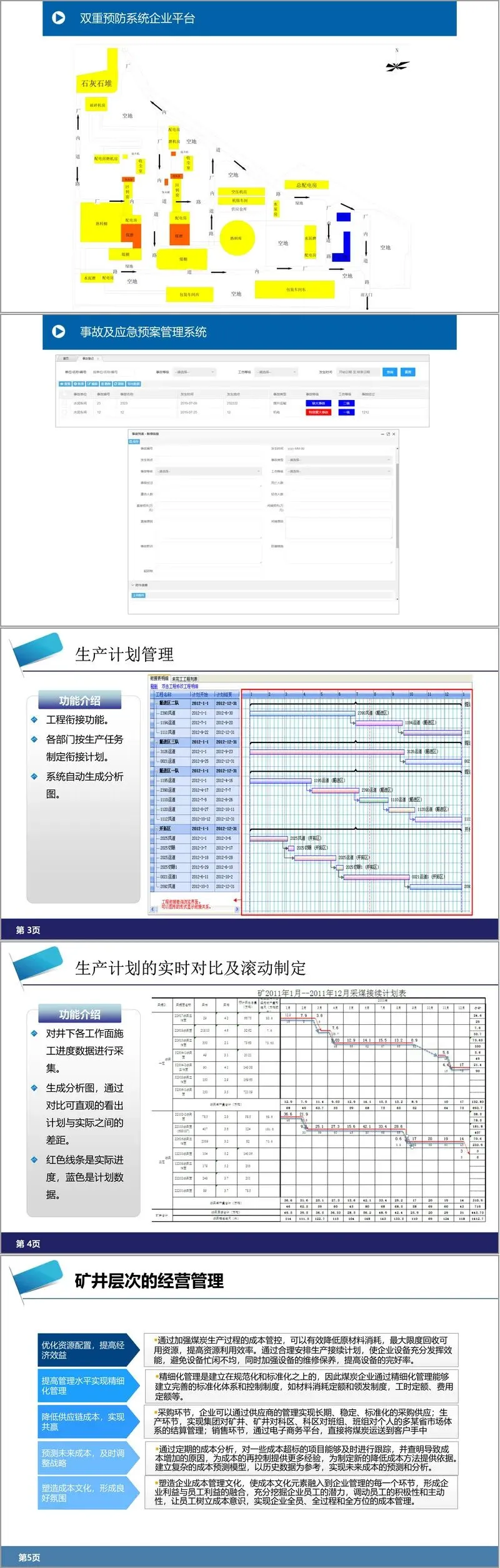 矿井层面的信息化应用则更加注重安全与生产协同。安全管理系统构建了“双重预防机制”,通过PC端与移动端结合,实现隐患从发现、整改到复查的全过程闭环管理,并具备预警提醒、奖罚记录和大屏展示功能。走动巡查管理系统则通过记录人员巡检轨迹,强化现场监管。生产计划管理系统能够实时采集井下工作面数据,自动生成计划与实际进度对比图,直观反映施工差距,为动态调整提供依据。