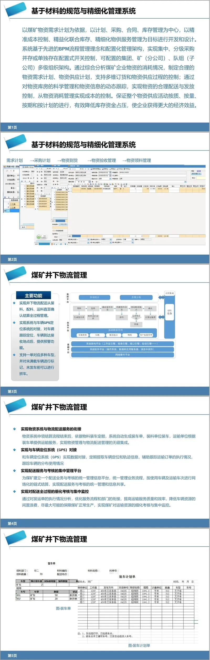 在经营管理方面,矿井层次通过成本管控、物资精细化和物流协同,推动降本增效。基于材料的规范与精细化管理系统,以BPM流程为核心,实现从需求计划、采购、验收到领用的全流程控制。井下物流管理系统则通过与GPS定位系统对接,实现装车、配送、结算一体化,提升运输效率并降低资源闲置。此外,设备全生命周期管理、用电管控、安全考核与工程闭环管理等系统,共同构建了矿井级“人、财、物、产、供、销”一体化管控体系。