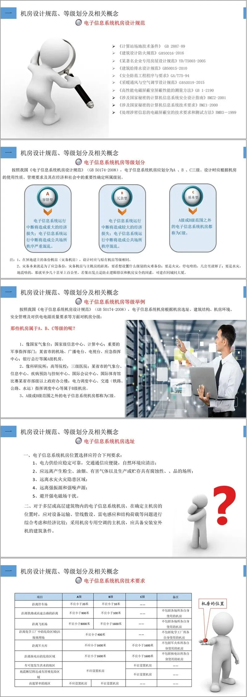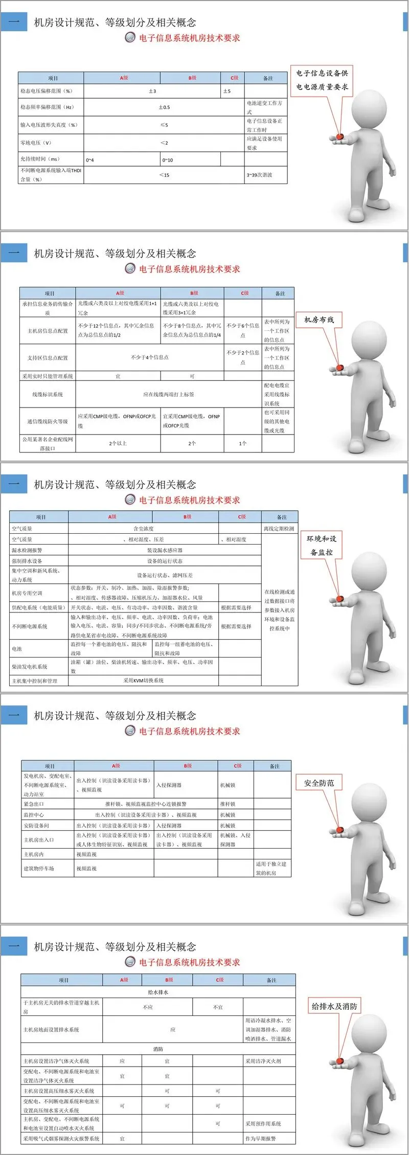 文章首先从机房设计的基本规范与等级划分入手,详细介绍了我国《电子信息系统机房设计规范》(GB 50174-2008)中对机房A、B、C三级分类的标准及其适用场景。A级机房属于容错型,适用于国家级信息中心、金融总行等对连续性要求极高的场景;B级为冗余型,适用于科研院所、三级医院等;C级则为基本型,覆盖其他一般性电子信息系统机房。选址方面,方案强调应远离粉尘、强电磁场、振动源等干扰因素,并充分考虑建筑承重、供电稳定与灾害防范。