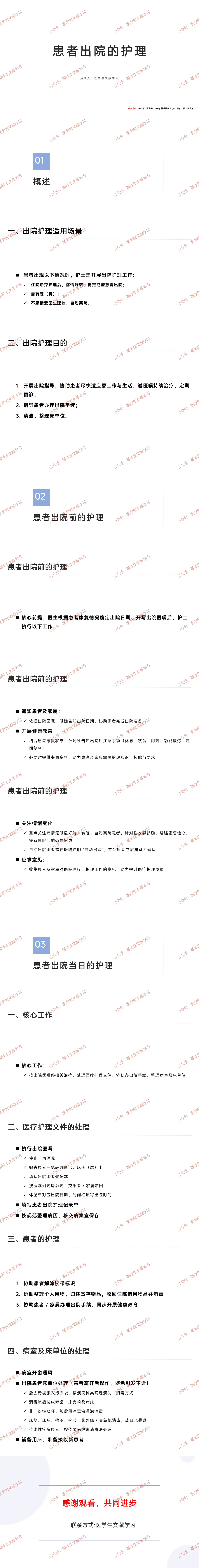 - 通知与准备:明确告知患者及家属出院日期,协助完成个人物品整理等出院准备。