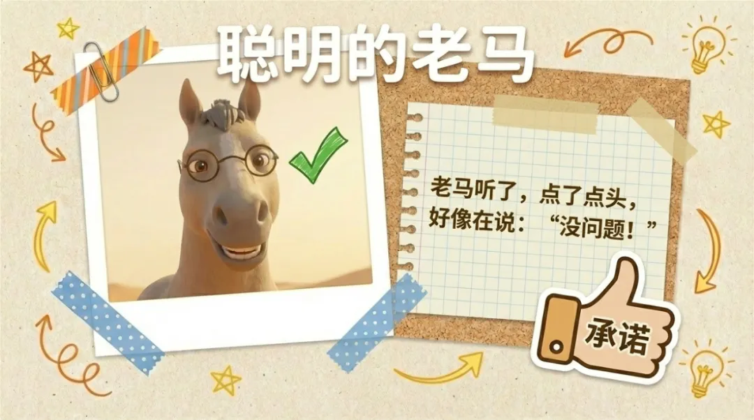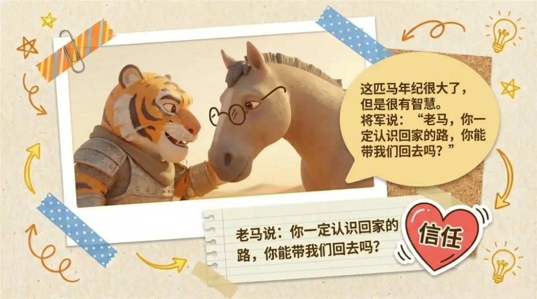 来展示一下刚做完《老马识途》,毕竟咱们也要与时俱进,用Ai来辅助育儿,不然,光按传统的方式,我自己都得琢磨半天才能跟她讲明白。还不生动。