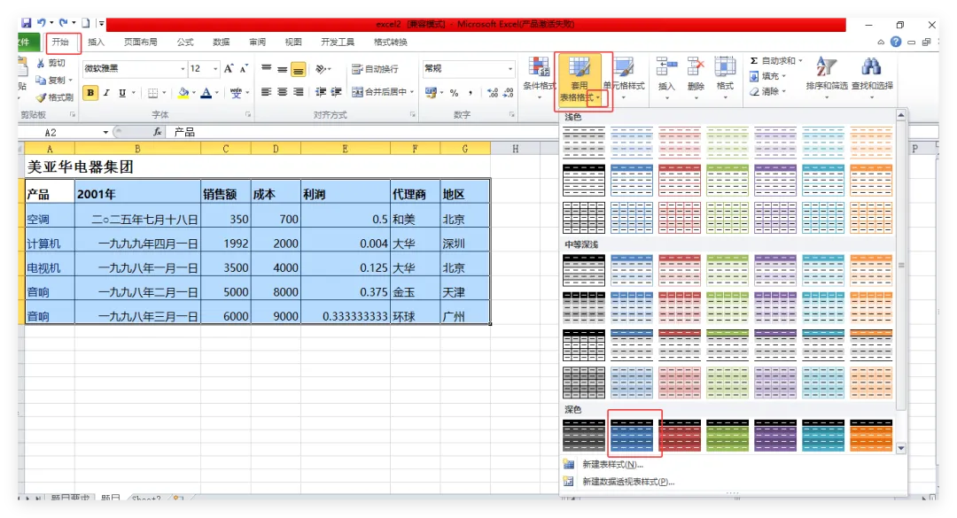 快速套用样式方法:选中表格→选中 “开始”→“套用表格格式”,一键应用预设样式(含隔行变色、表头高亮),还支持一键筛选。