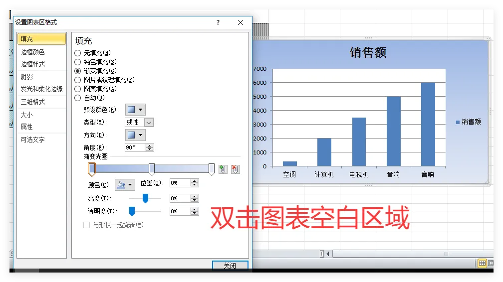 方法:对图表每部分区域双击或右键单击,一般都可进入再设置