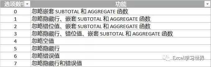 引用形式:AGGREGATE(function_num, options, ref1, [ref2], …)