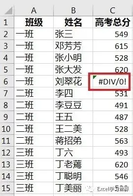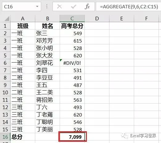 对下表中的 C 列忽略错误值求和。