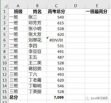还是以这个表为例,求一班的最高分。