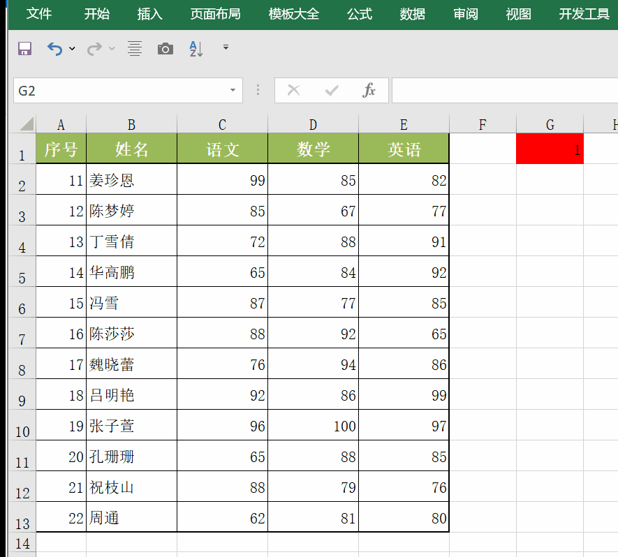 上图中,只要删除G1单元格中的内容,表格马上隐藏掉;在G1单元格输入数字、文字,字母等