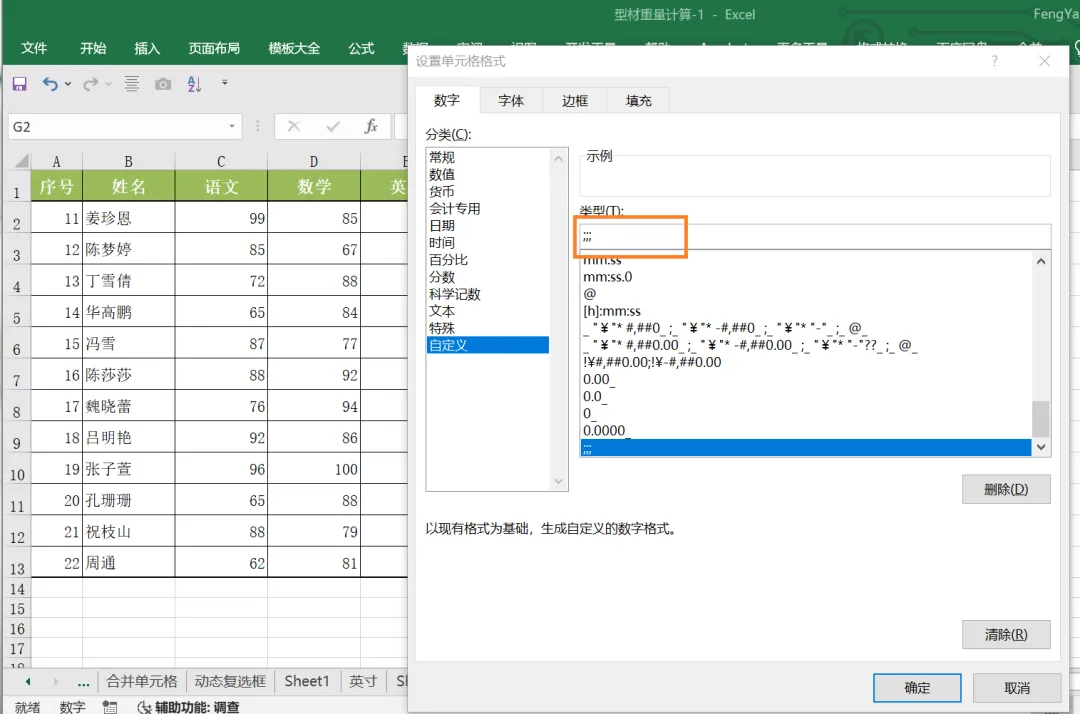 采用自定义格式,格式为英文输入法下的三个分号;;;。
