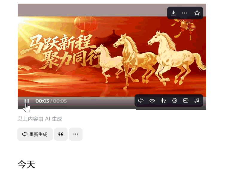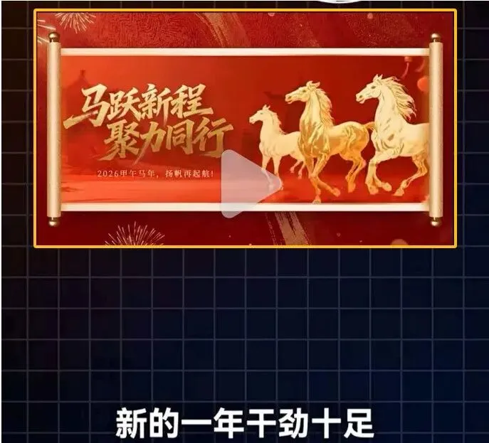 提示词:在视频中,画面右侧的三匹马正充满力量地向前飞奔,所有背景凉亭山脉和马路,都要跟随流动起来,云雾流动,灯笼随风飘荡,整体充满了动感与活力,同时左侧的文字保持清晰静止,整个相似度保持在96%以上