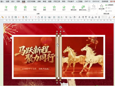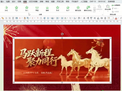 这个PPT特别的应景,拆解了一份马年很喜庆红色的,书法字体过年的动画PPT: