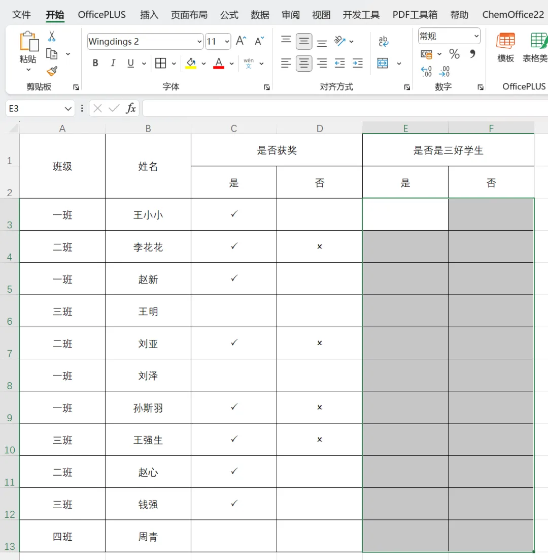 填报电子表格,或制作电子表格,经常会遇到打“√”或打“×”,有人做的表格就特别好,我们直接点击就可以打“√”或打“×”,但有人做的就不行,怎么回事?跟着文档达人一起学习新知识,速快打“√”打“×”技巧。4.点击需要打“√”的单元格,输入P(大写)输出即为√。可以开启大写字母Capslk键后直接点击P键,也可以Shift+P组合键。5.点击需要打“×”的单元格,输入O(大写)输出即为×。可以开启大写字母Capslk键后直接点击O键,也可以Shift+O组合键。6.那如果需要方框中打“√”或打“×”呢?同样方法。(1)选中数据区域,设置字体格式为Wingdings2。(2)点击需要打“方框√”的单元格,输入R(大写)输出即为方框√。点击需要打“方框×”的单元格,输入Q(大写)输出即为方框×。小技巧:“Shift+字母”大写字母组合,记住喽。往期内容推荐: