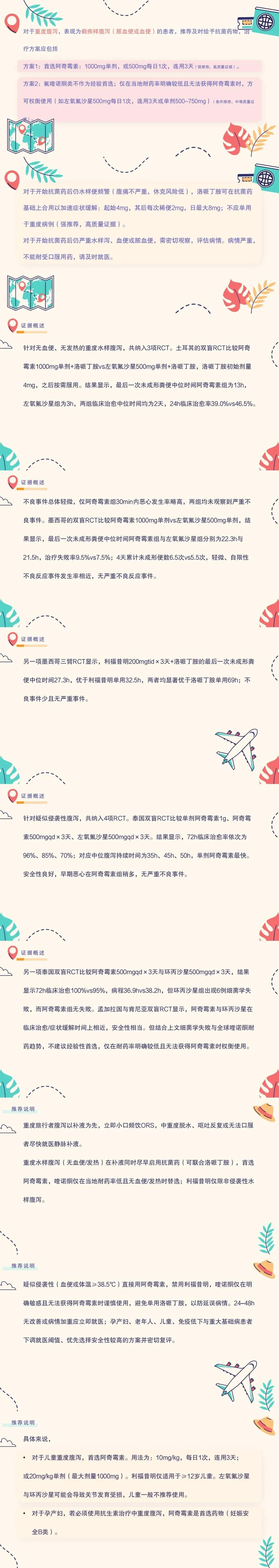 方案3:利福昔明200mg每日3次,连用3天,建议在已知侵袭性致病菌(如志贺菌、弯曲杆菌、沙门菌)流行率较低的地区采用。