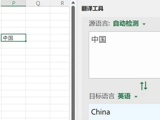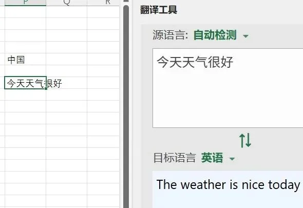 ,只需要把光标移动单元格里,可自动翻译。
