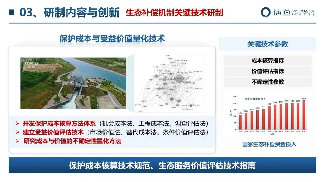 核心技术体系:研发跨区域水质目标管理技术,包括水生态功能分区与水质基准确定技术、水环境容量动态核算与分配技术、水质目标动态优化与响应关系模型,形成 “目标 - 容量 - 负荷 - 削减” 的响应链条,支撑精准治理决策。生态补偿机制:突破保护成本与受益价值量化技术,通过机会成本法、市场价值法等多方法核算成本与生态服务价值,设计基于绩效的补偿机制与资金分配方案,明确补偿标准与激励相容机制,破解权责错配难题。全链条落地路径:通过典型跨区域河流的实证验证,提炼可复制推广的协同治理模式,形成技术导则、政策建议与推广指南,推动技术成果向政策转化,支撑流域一体化管理体系建设。四、评价