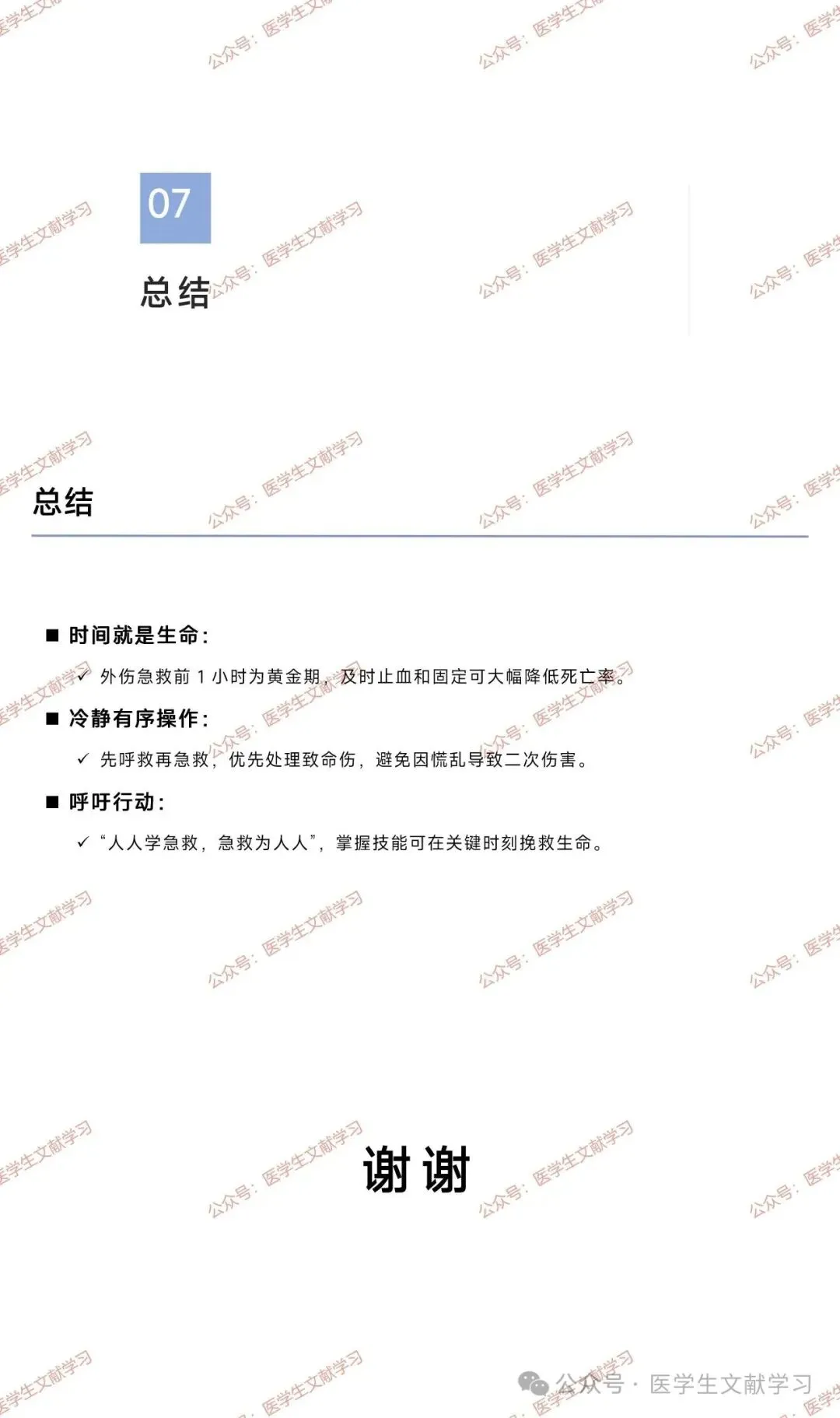 黄金时间:外伤急救前 1 小时为黄金期,及时止血和固定可大幅降低死亡率。