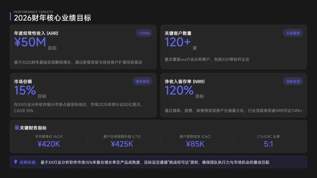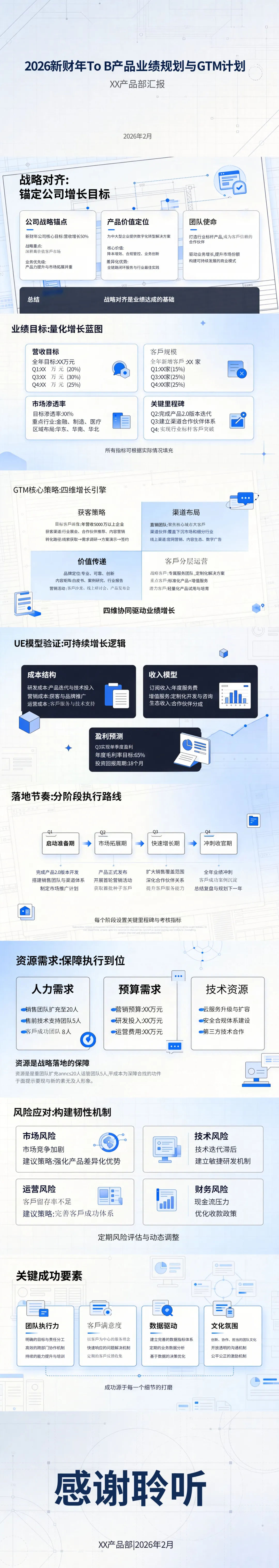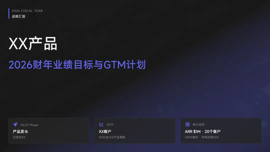 而这份要向上级汇报、跟业务部门对齐的「2026 财年新产品业绩规划PPT」,正是体现我们作为To B产品操盘能力的一次大考。
