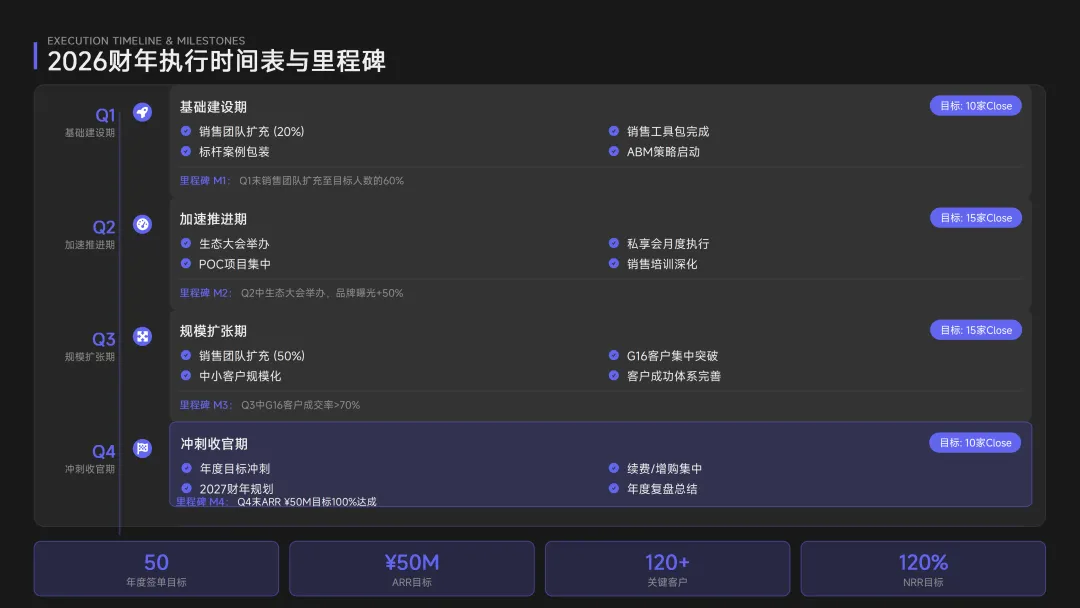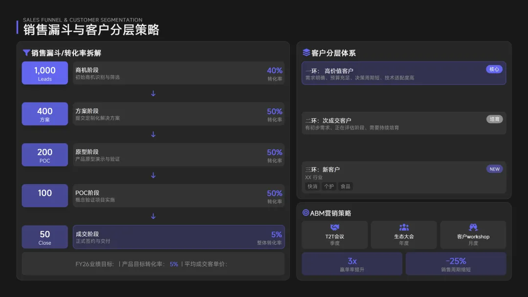 说真的,尤其是新产品这种还处于非常初级,雾里探花的阶段,要把业绩指标量化清楚、对齐公司战略,又要拆透市场节奏、落地获客打法,最头疼的是,还得让老板看明白、业务部门认同一一 往往要耗上大半天,才勉强有个头绪。