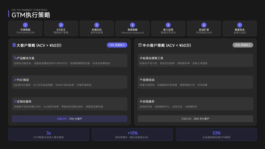 还有 GTM 打法,拆得太粗,业务部门接不住,拆得太细,又显得冗余,核心是要让产品真正产生业务价值。