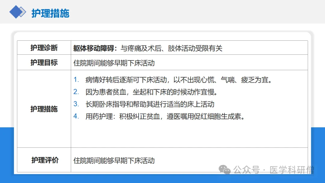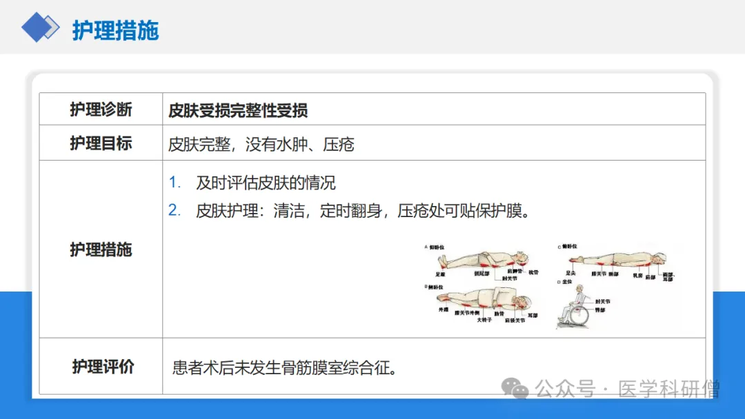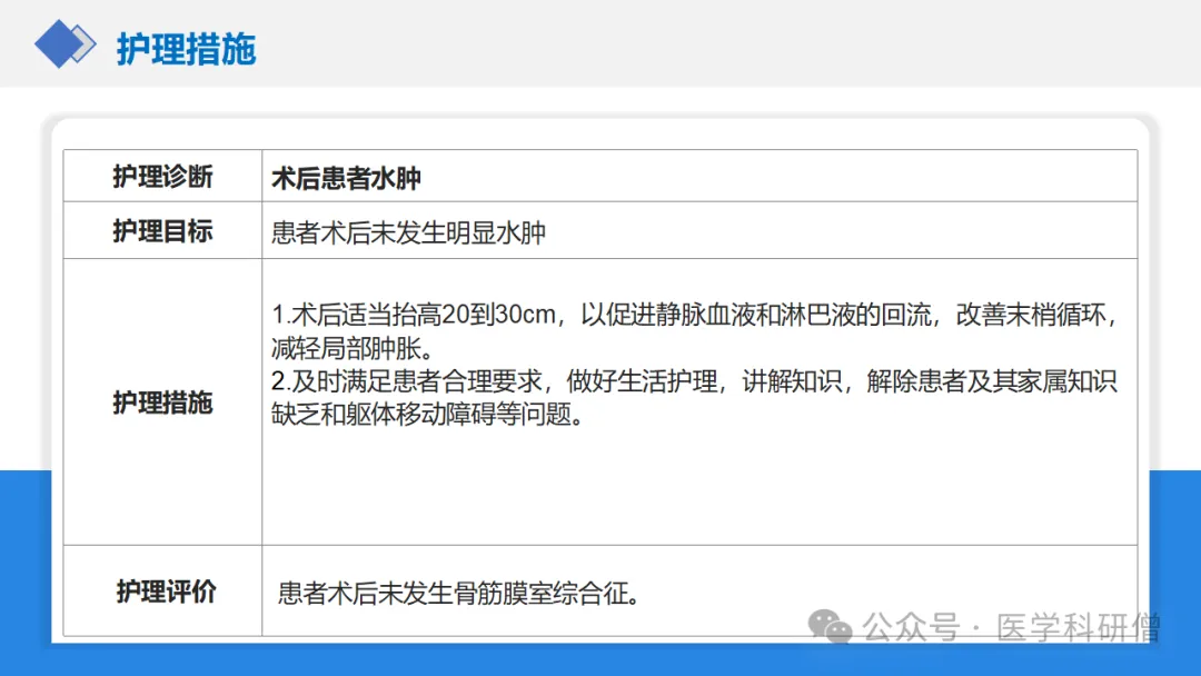 3. 鼓励床上活动预防下肢深静脉血栓:患者术后未出现下肢深静脉血栓的并发症;