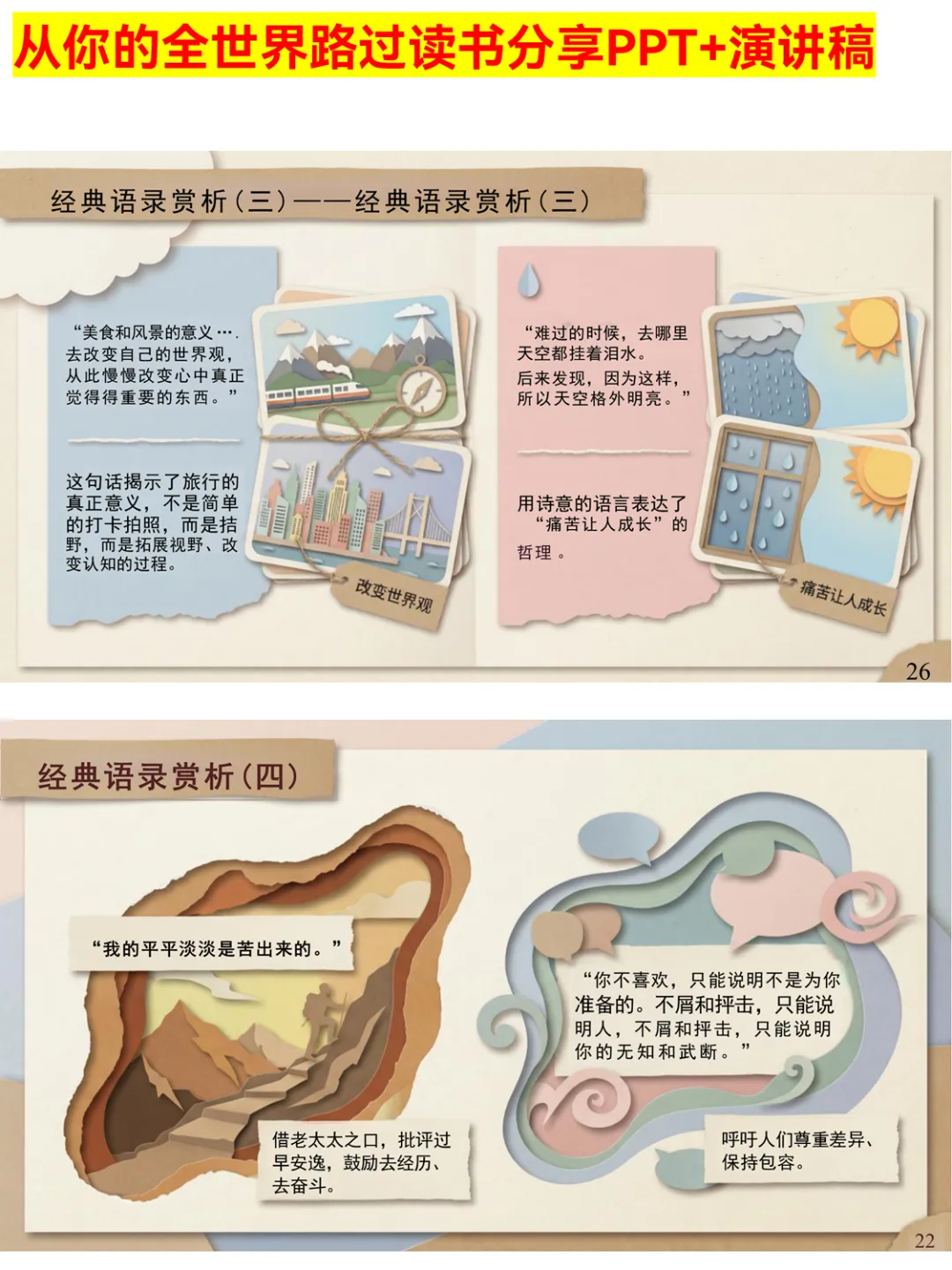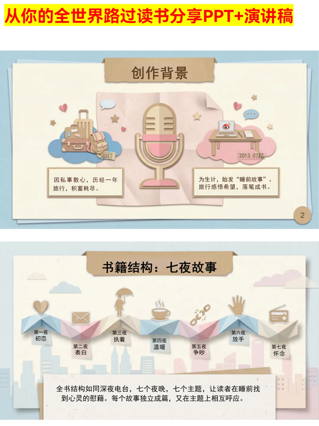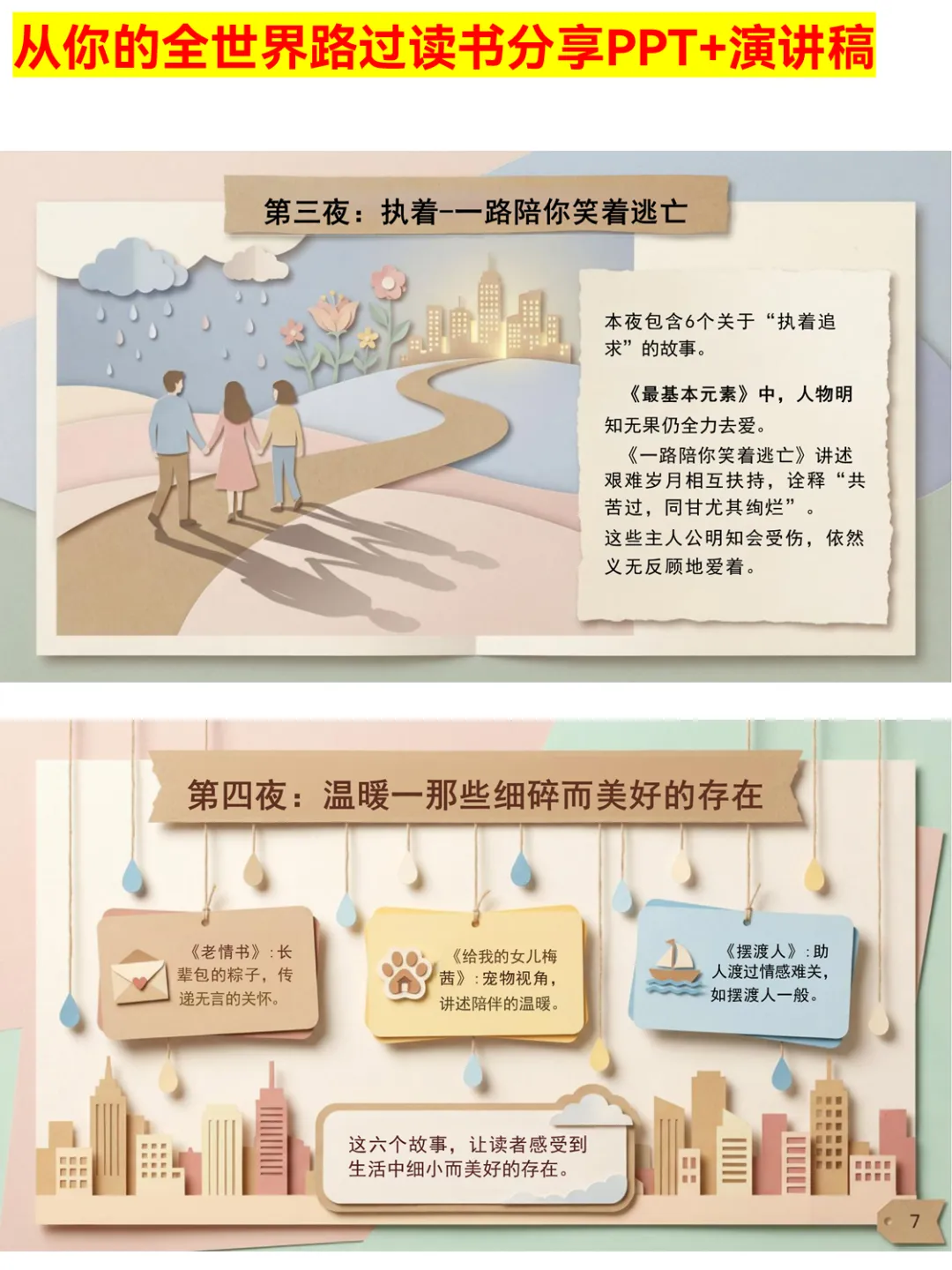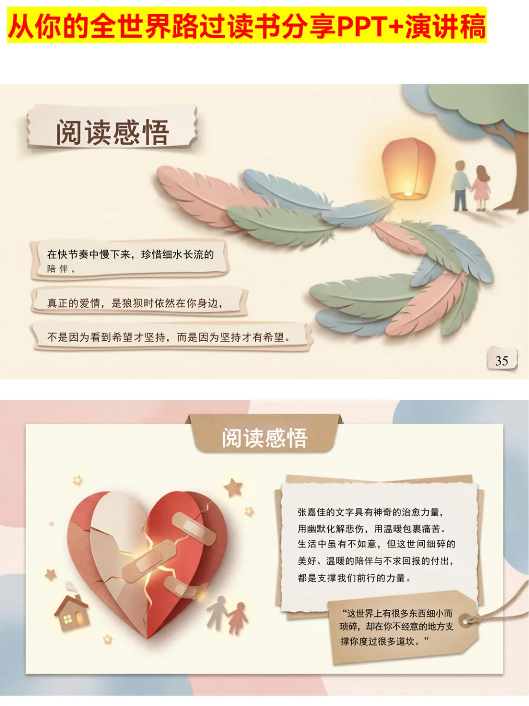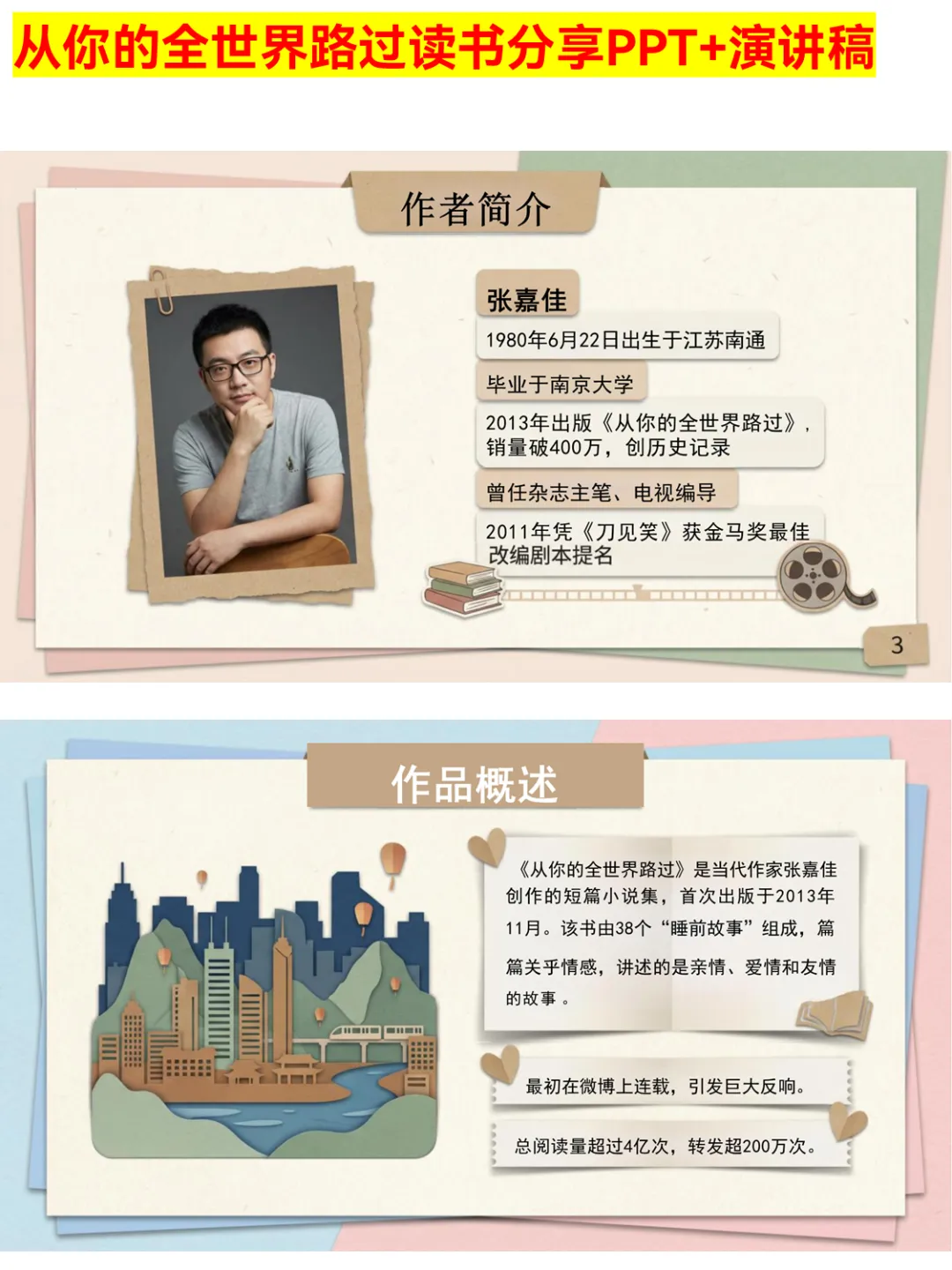 谁还没被张嘉佳的《从你的全世界路过》治愈过!这份读书分享PPT涵盖作者简介、38个睡前故事解析,从初恋到怀念的七夜主题超戳心,还有超多金句赏析和情感共鸣点。不管是课堂分享还是个人复盘,都能直接用,帮你快速get书中的温暖与力量~ 搜索关键词:从你的全世界路过读书分享PPT 张嘉佳作品分享PPT 睡前故事读书PPT #从你的全世界路过 #张嘉佳 #读书分享PPT #睡前故事 #治愈系书籍 #情感书籍 #PPT分享 #读书PPT #好书推荐 #文学分享