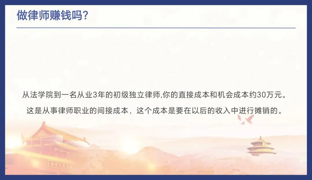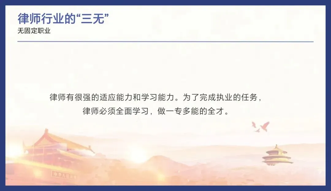 2.中坚的骨干力量:这是行业的中流砥柱,由大量能够独立执业、业务稳定的律师构成。他们通过兢兢业业的努力,获得了市场的认可,拥有相对稳定的客户群和收入来源,构成了律师职业的中产阶级。他们的生活充实而忙碌,压力与机遇并存。