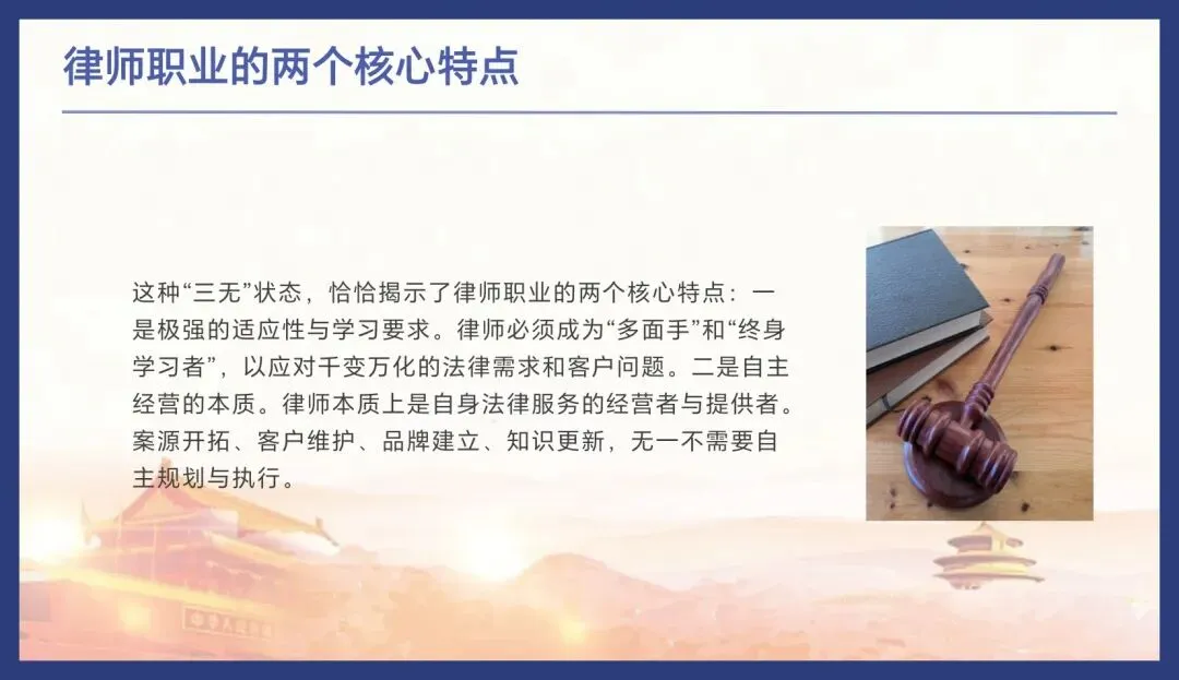 3.成长中的探索者:包括新执业的律师和尚未找到稳定发展路径的同行。这个阶段可能充满挑战,案源不稳定、收入起伏大、经验尚在积累。然而,这也是潜力最大、可能性最多的阶段,关键在于能否快速学习、准确定位并坚持不懈。