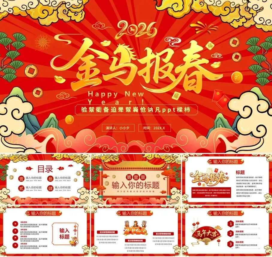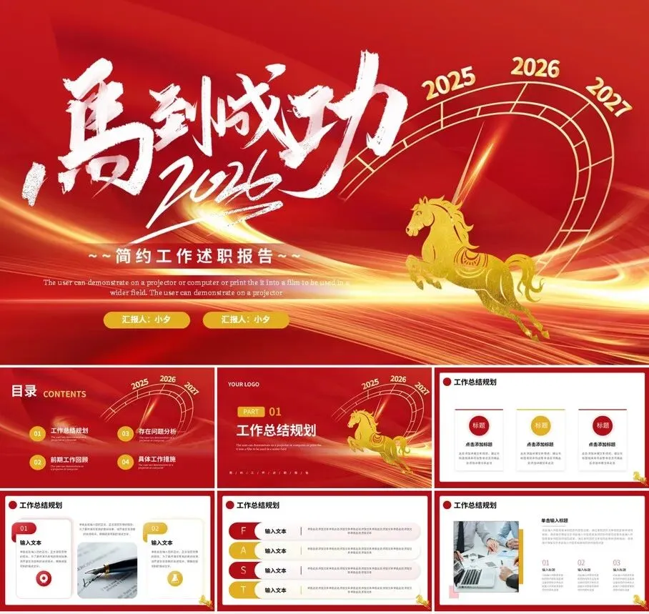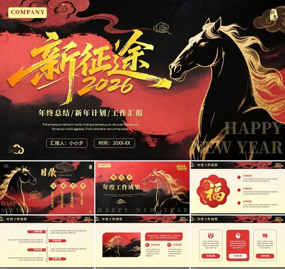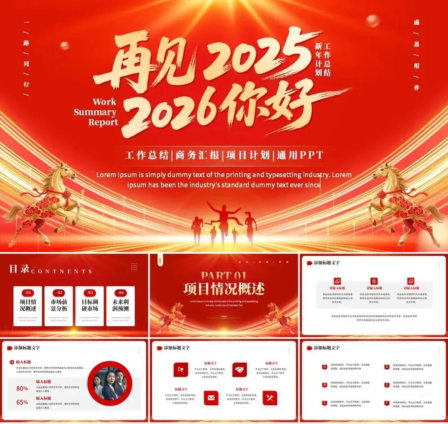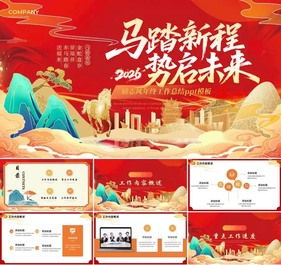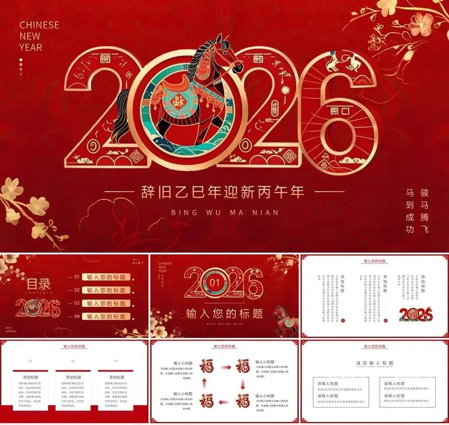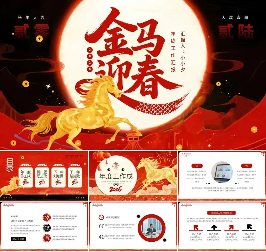 2026马年主题PPT模板适用于新年年会、工作汇报、年终总结、述职报告......