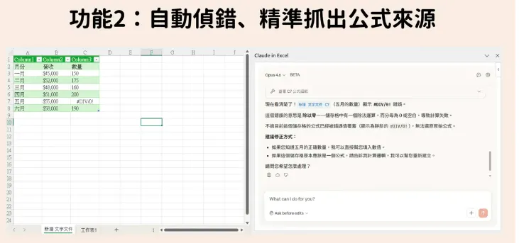 Claude 还提供引用方框,点下去就能直接跳到公式参照的储存格,快速掌握计算逻辑。
