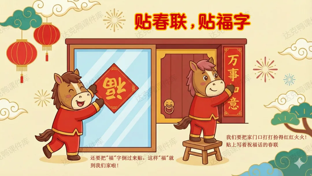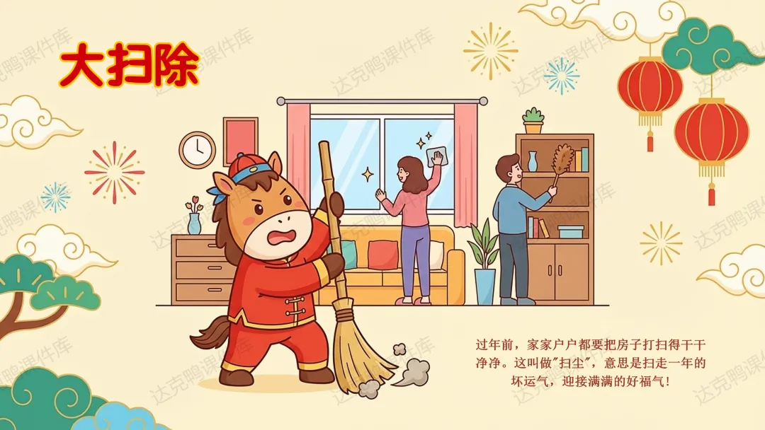 难点:理解春节习俗(如大扫除、吃鱼)背后的吉祥寓意(如辞旧迎新、年年有余)。