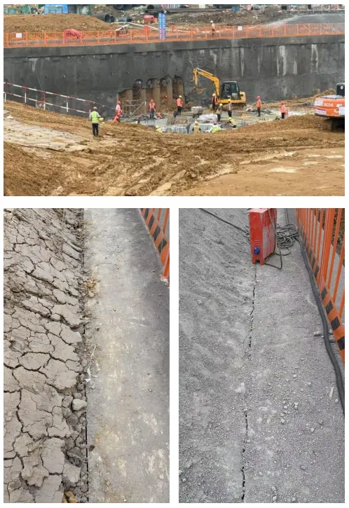 通过监测点平面示意图及现场变形裂缝照片,直观呈现深基坑当前变形状况,便于各参建单位负责人全面掌握实际情况。