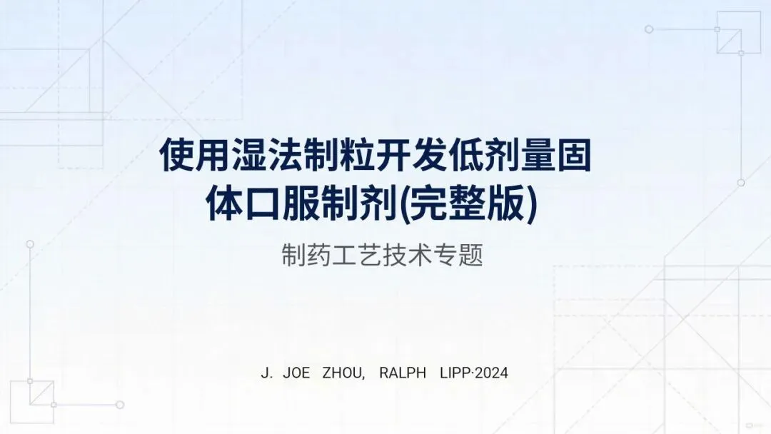 >【PPT】使用湿法制粒开发低剂量固体口服制剂