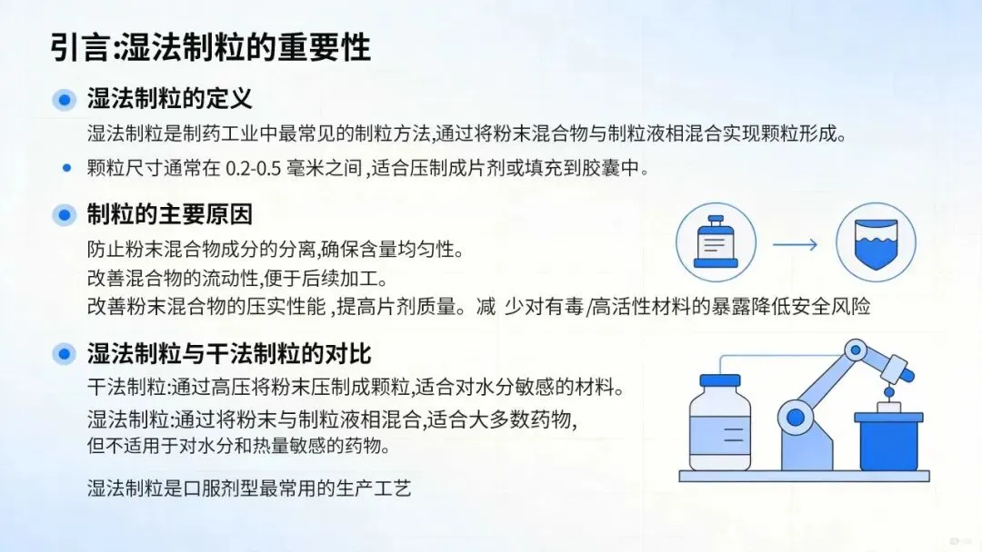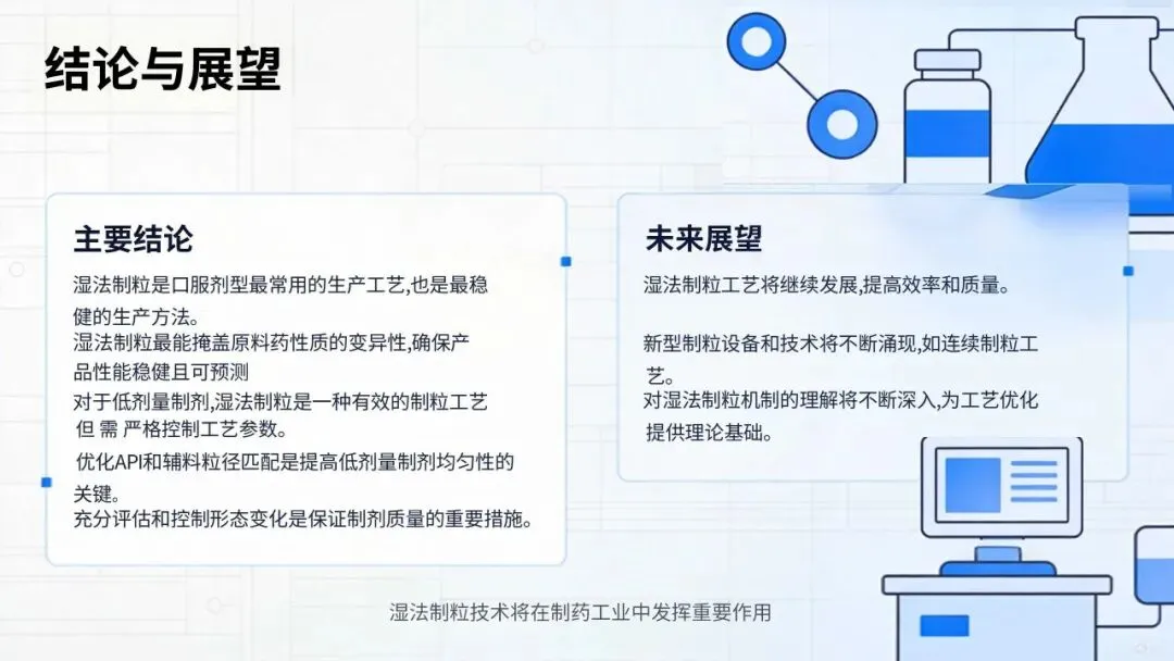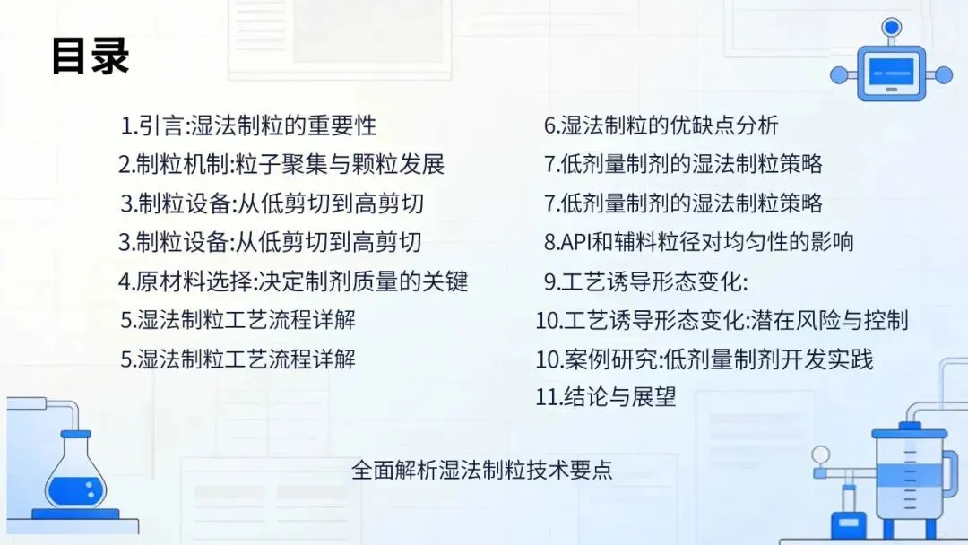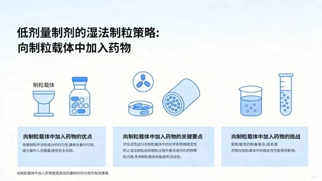 本章围绕湿法制粒技术开发低剂量固体口服制剂展开论述,系统介绍制粒机制、常规工艺考量、优劣势分析、低剂量制剂应用、工艺相关形态变化及研究结论。湿法制粒作为口服固体制剂经典且应用广泛的生产工艺,具备优异的工艺稳健性,可弱化原料药性质变异性,保障制剂性能稳定可预期。低剂量制剂生产存在显著技术难点,工艺选择与原料药性质高度相关,湿法制粒虽不适用于全部化合物,但仍是该领域研究与应用最成熟的工艺。其流程复杂的不足,可转化为多工序质量控制的优势,便于制剂研究者通过多环节调控,系统构建并保障最终制剂质量。本文选自:《FORMULATION AND ANALYTICAL DEVELOPMENT FOR LOW-DOSE ORAL DRUG PRODUCTS 》第5章《使用湿法制粒开发低剂量固体口服制剂》