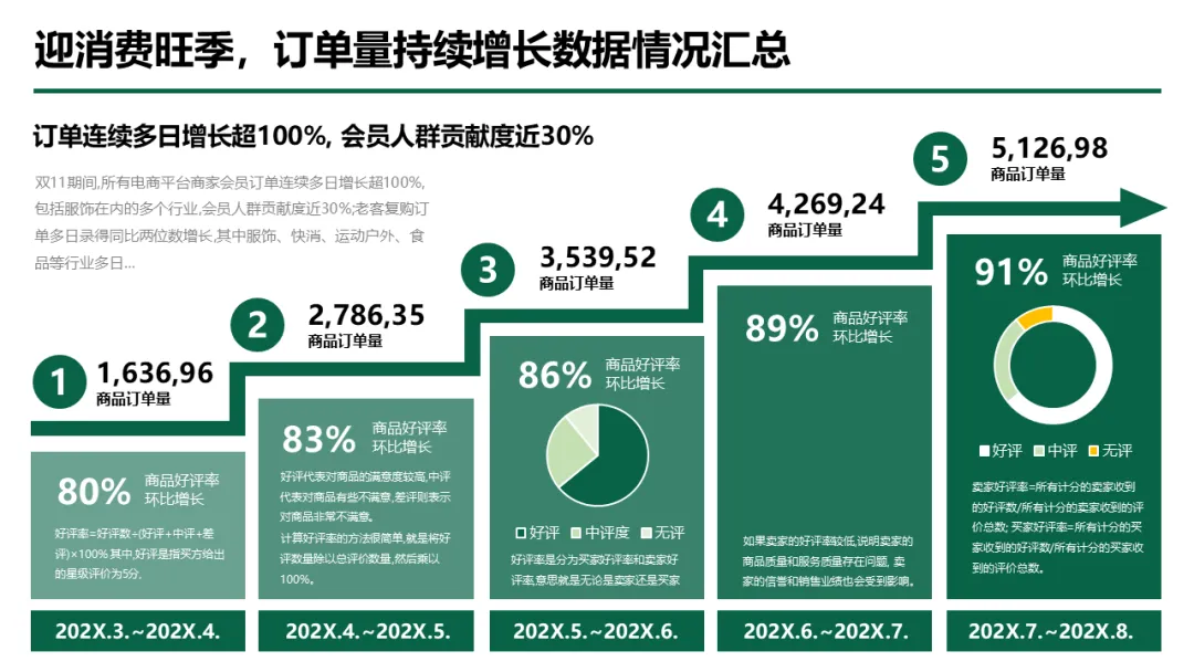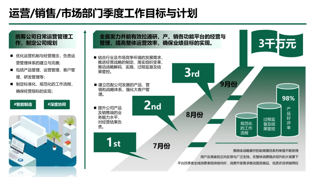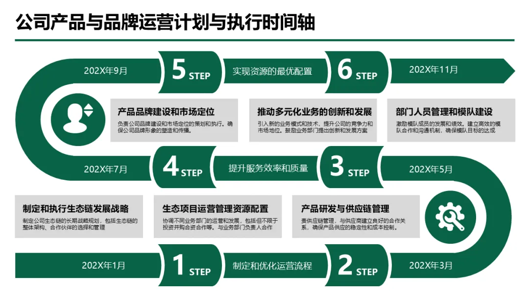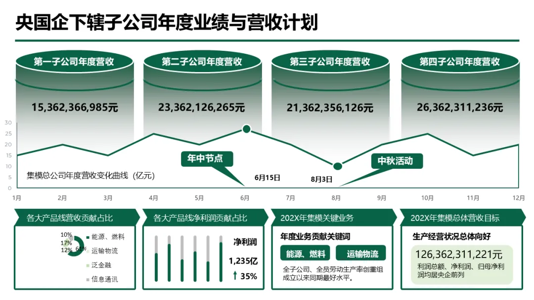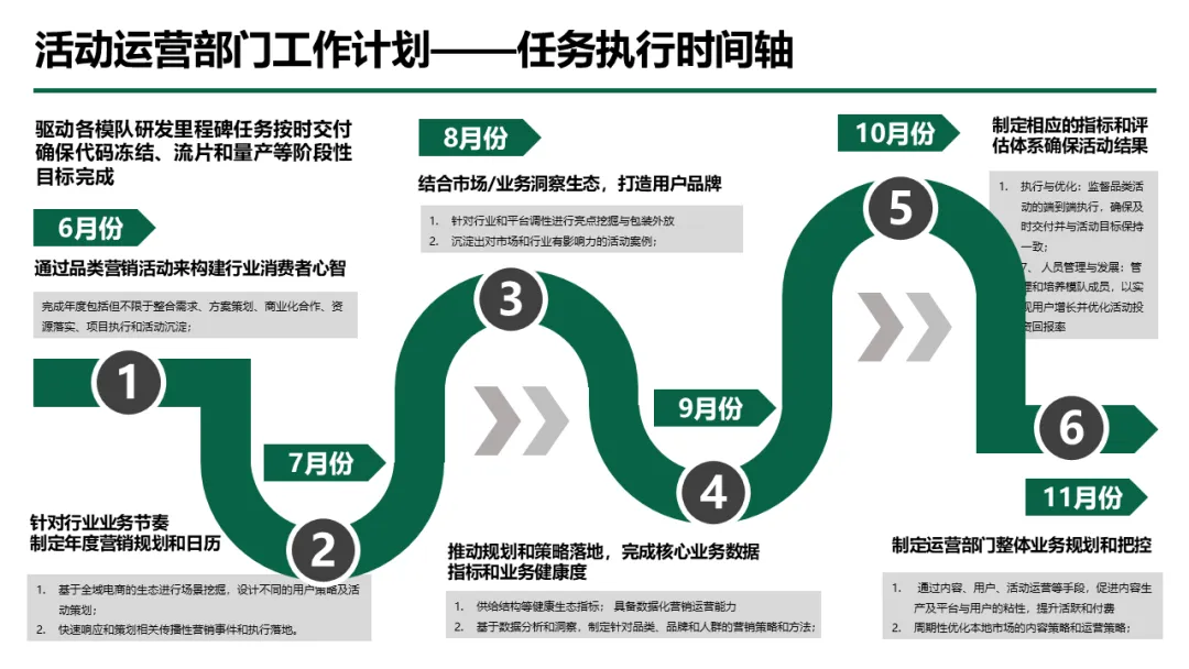 更关键的是,材料跳出单纯的汇报形式,将方法论与实战案例深度结合 —— 既有品牌发布会流程、电商运营架构等具体场景方案,又有年度业绩数据统计、季度计划拆解等实用工具,还包含企业发展历程、模队建设、荣誉资质展示等汇报加分项,帮助使用者不仅能做好汇报,更能通过汇报逻辑梳理工作、优化策略,真正从 “机械套模板” 成长为 “懂逻辑、会落地的方法论大师”。