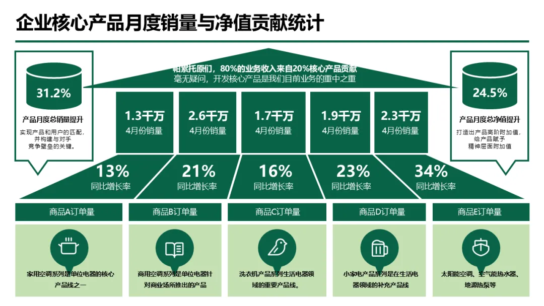 从企业核心产品短板分析、新产品开发全流程,到流量获取与私域变现体系,再到个人能力模型搭建与工作复盘,既提供可直接复用的汇报框架、数据图表模板,又输出深度落地的方法论支撑,兼顾实用性与专业性。