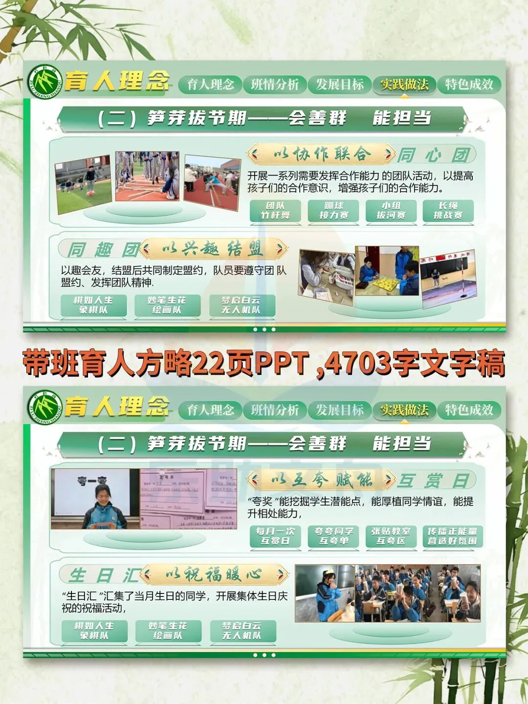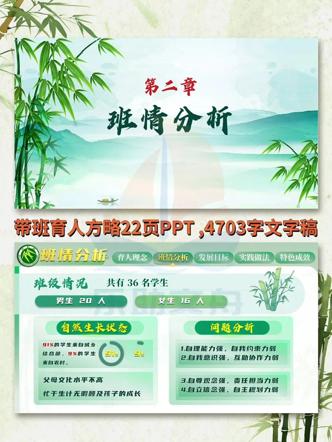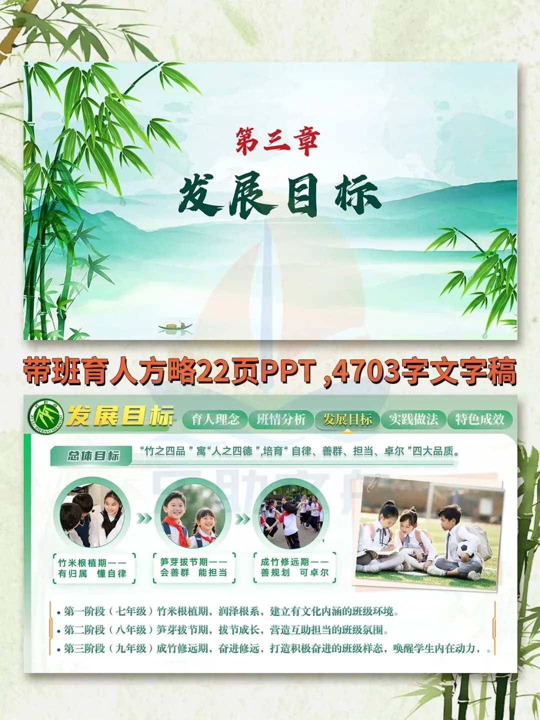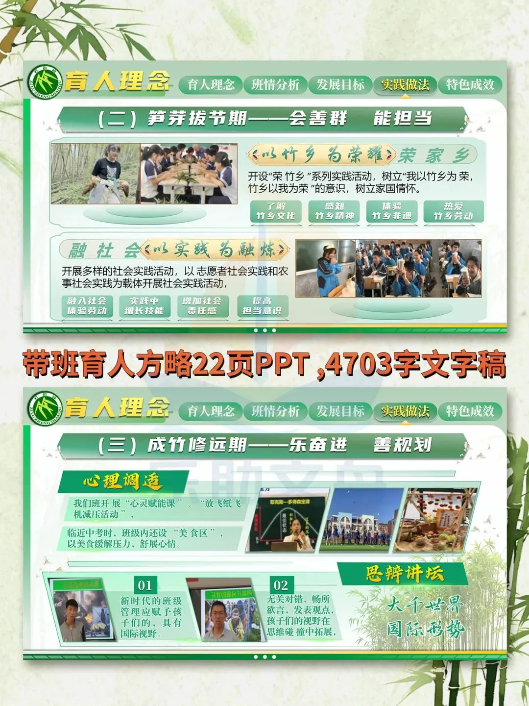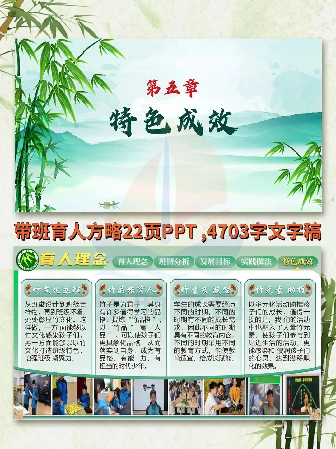 班主任基本功大赛之竹文化带班育人方略PPT模板‖虚怀满志,外延内生