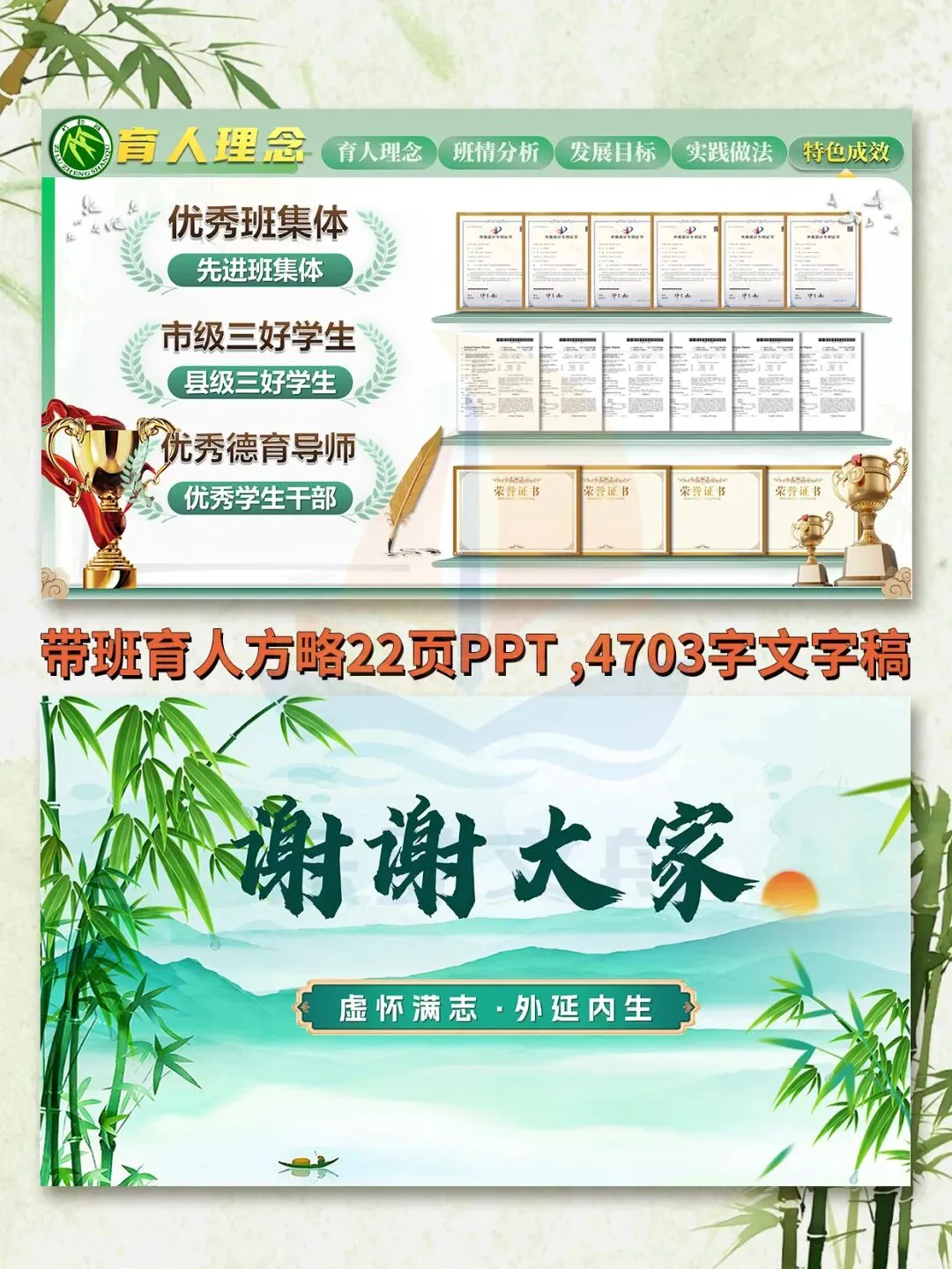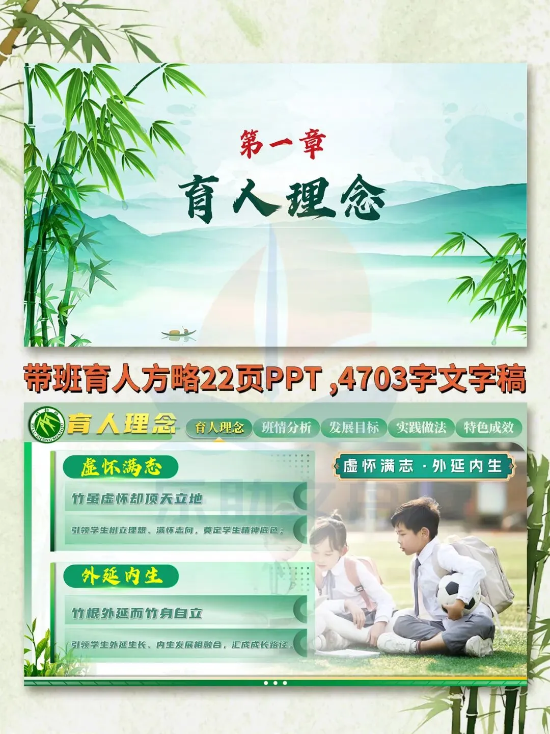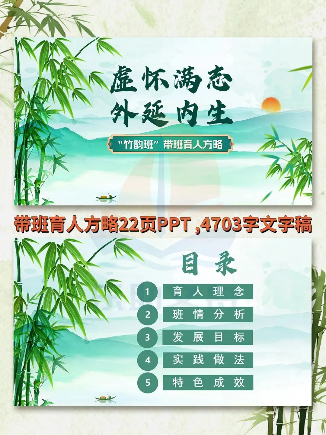 >班主任基本功大赛之竹文化带班育人方略PPT模板‖虚怀满志,外延内生