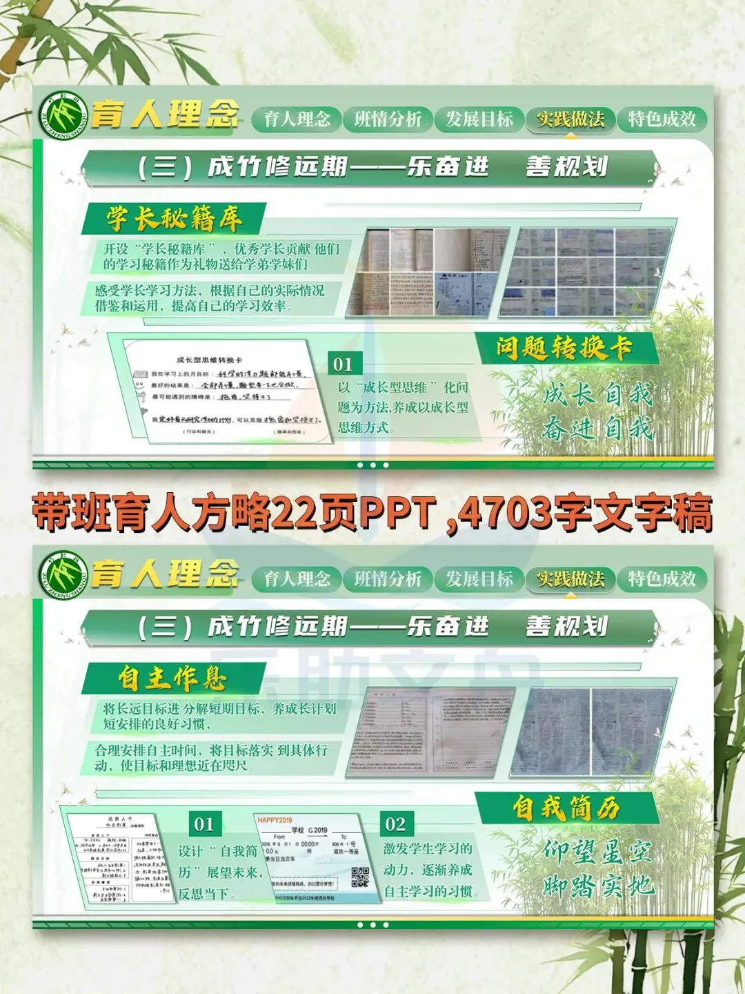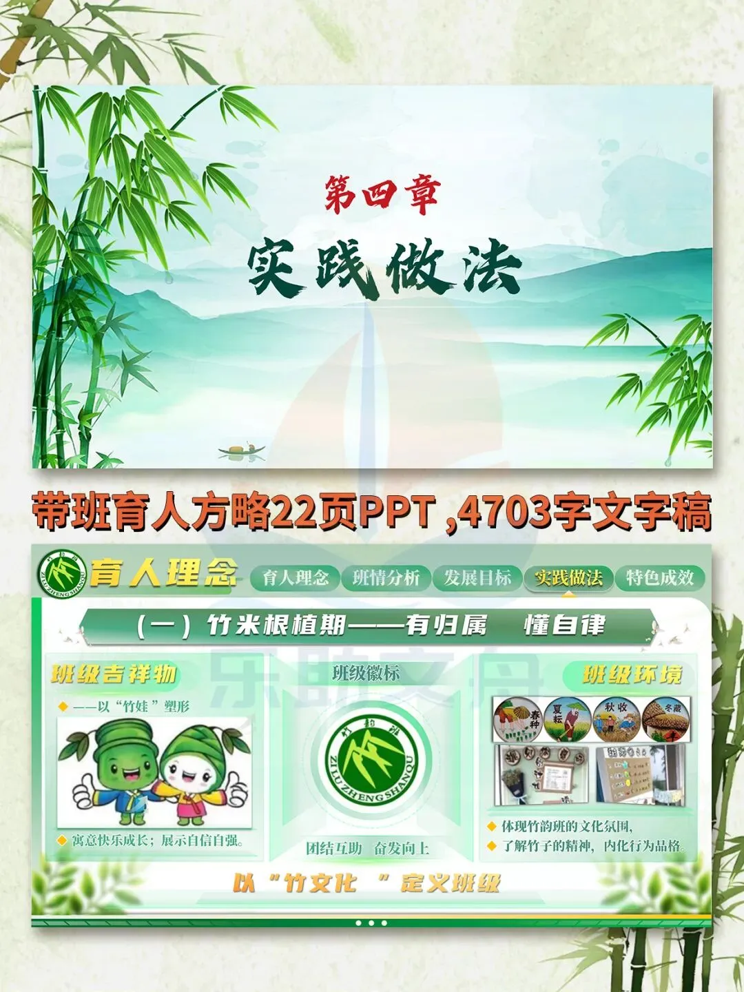 班主任基本功大赛之竹文化带班育人方略PPT模板‖虚怀满志,外延内生