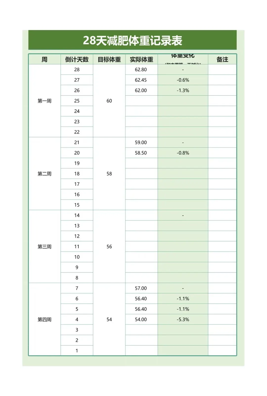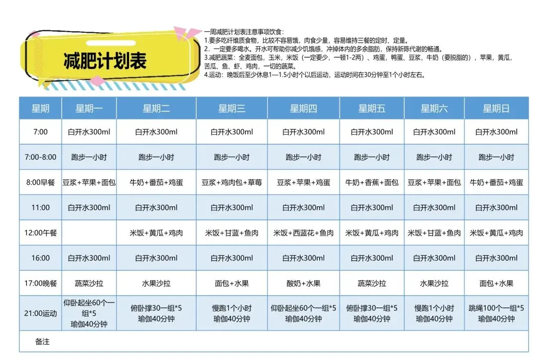 减肥计划表