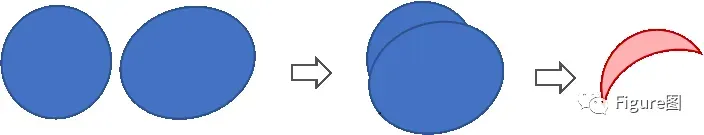 3、继续使用布尔运算将下图两个圆进行拆分,得到右侧月牙形状;不用提前改好颜色,拆分后也可以改;
