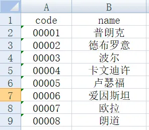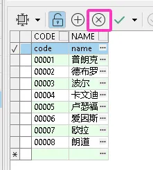 注意事项:在单击✅️按钮之前,需要把Excel表格中的表头(即字段名称code和name)删掉,操作方法就是如图3所示,选中这一行,然后点击×号按钮。