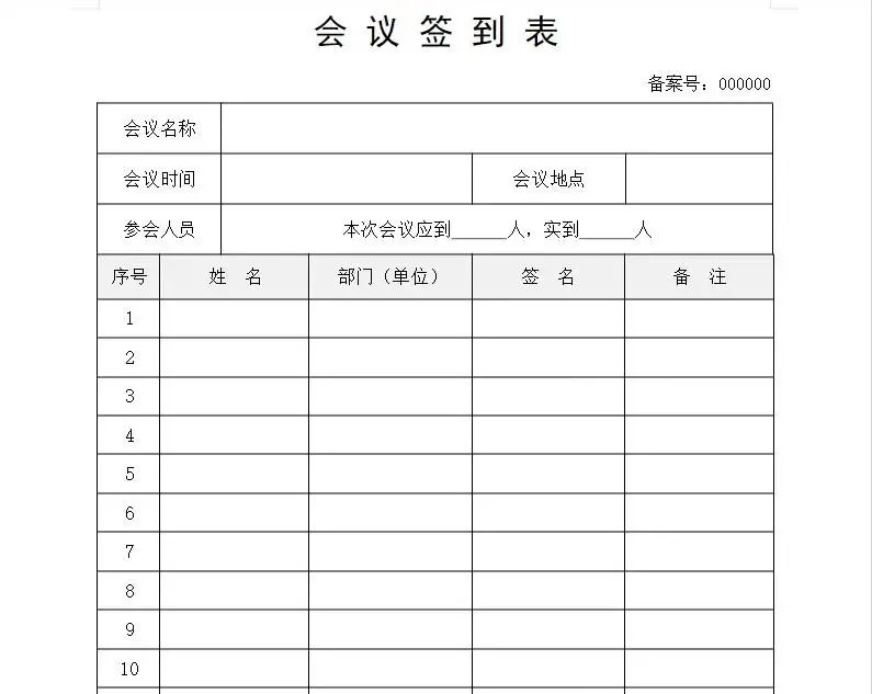 签到表格模板100套 会议签到表、培训签到表等